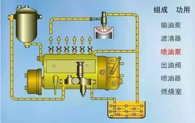 对于回油管不直接与柴油滤清器相通的柴油机,高压空气则可能从喷孔通过密封锥面,经喷油器体的进油孔、高压油管、出油阀与座的间隙进入喷油泵盖,并能通过泵盖上的回油阀孔返至输油泵。